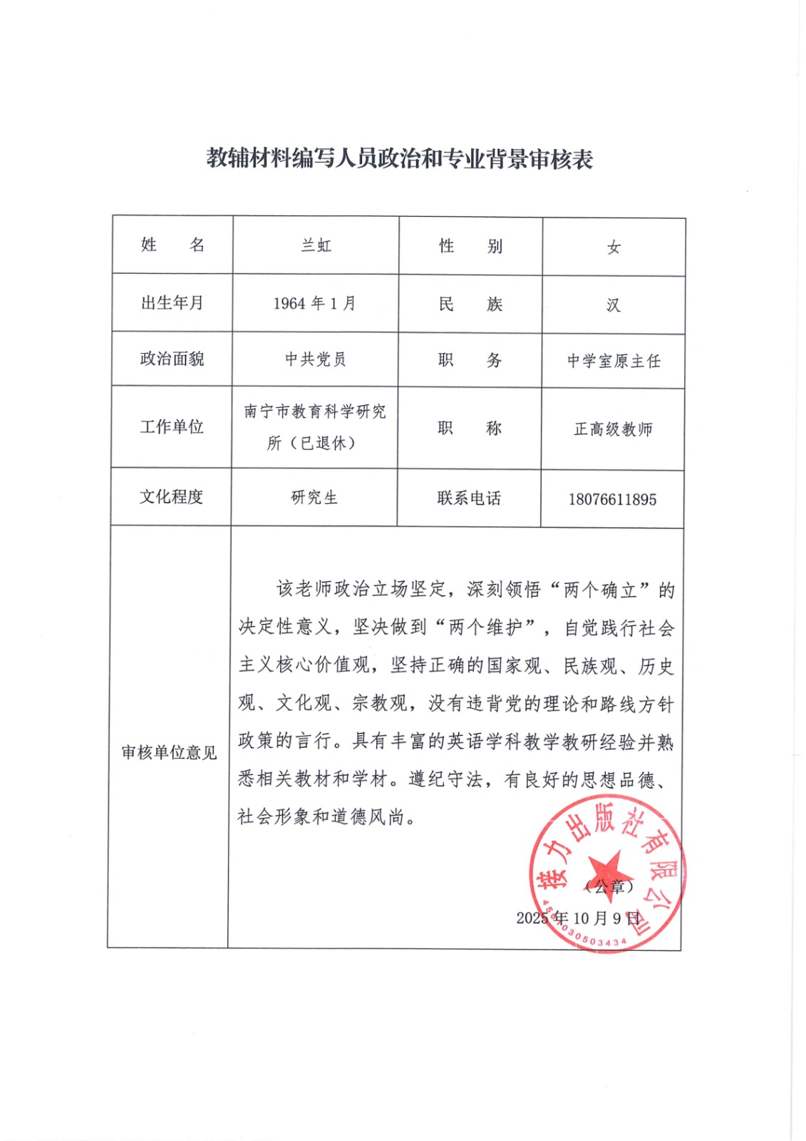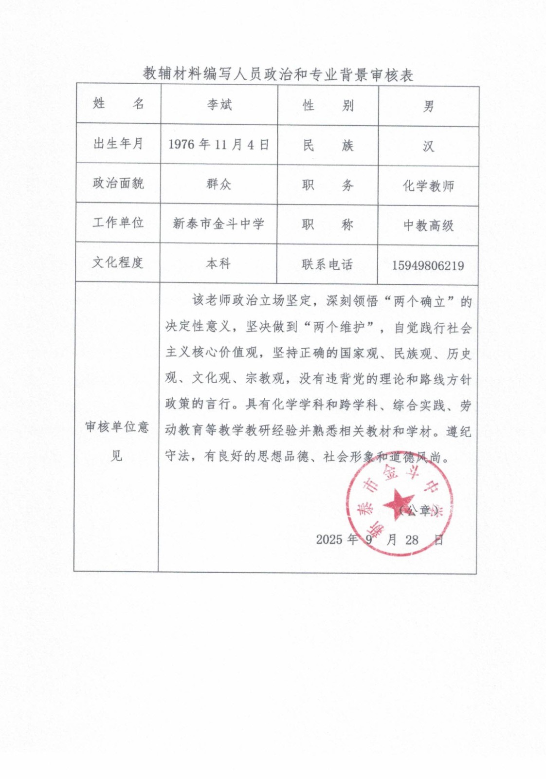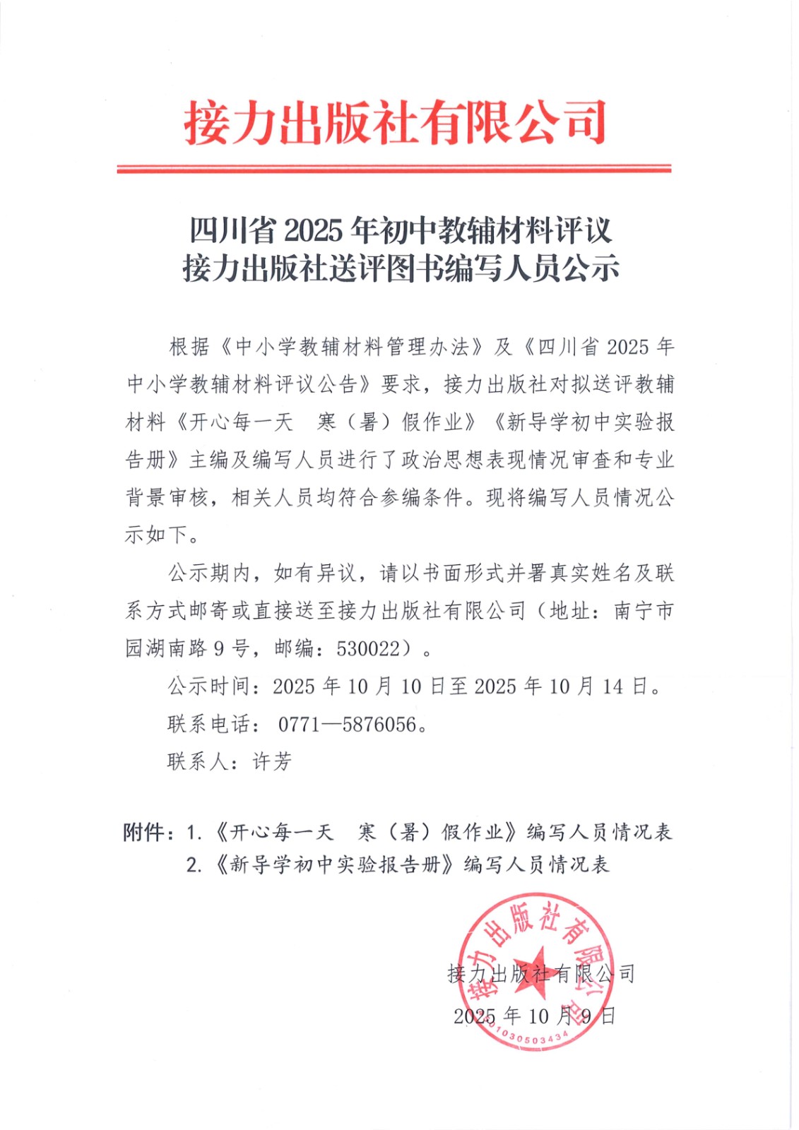 四川省2025年初中教辅材料评议接力出版社送评图书编写人员公示